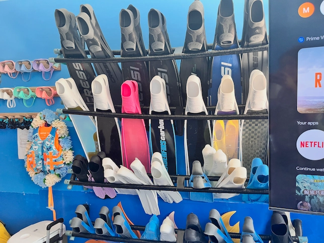 シュノーケルツアー、ロングフィンレンタルが豊富。お店のスタッフが親切に説明してくれて、WhatsAppで丁寧にやりとりしてくれるので、フリーダイバーにはおすすめのお店です。