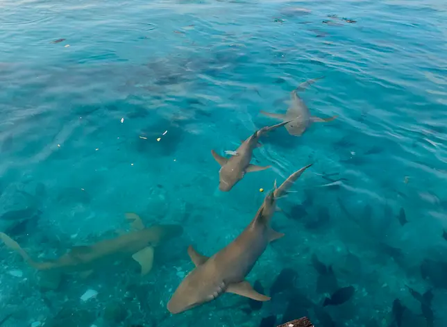 これは島の一部にあるスポットで、ローカルの生活の一環として出される食べ残しに誘われて、ナースシャークやエイなどの海の生き物たちが姿を現すのです。特に夜から早朝にかけて集まってきます。