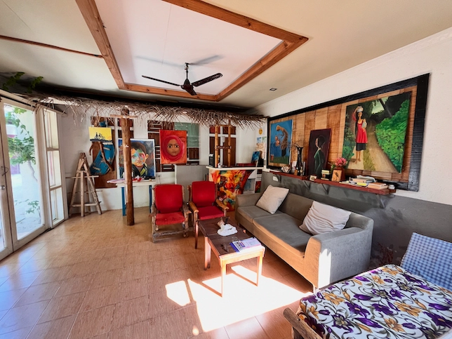 室内や共用スペースに飾られている美しい絵画は、実はすべてオーナーの手描き。ゲストハウスの至る所で手作りのアートもみられます。夕方頃にはギターの弾き語りで静かな時間を彩ってくれることもあり、まるで家族のような温もりを感じさせてくれます。