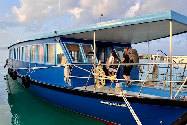 モルディブのローカル島の魅力を満喫するなら、ローカルフェリーを利用したアイランドホッピングがおすすめです。私がGuraidhooに滞在した際は、ローカルフェリーで近隣の島を巡りました。