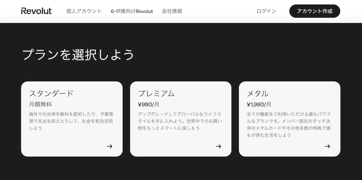 Revolutには3つの料金プランがあります。