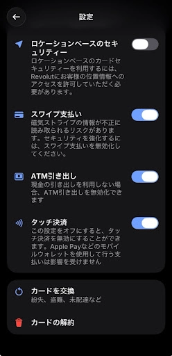 Revolutのセキュリティ機能は、アプリですべて管理できます。