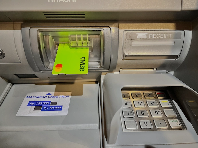 Wise側の手数料とは別に、ATMを設置している銀行が独自に課す手数料があります。これは国や銀行によって異なり、タイでは約250THB(約1,000円)、インドネシアの大手銀行では無料など、差があります。