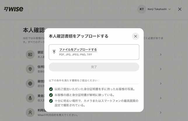 詳しい本人確認方法はWise公式ヘルプ:本人確認についてをご確認ください。