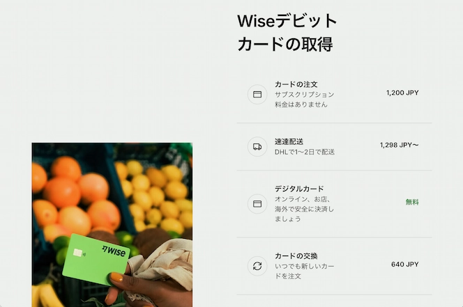 海外旅行や海外在住で手数料を節約したい方は、Wiseデビットカードがおすすめです。申込はオンラインで完結し、最短3日で届きます。