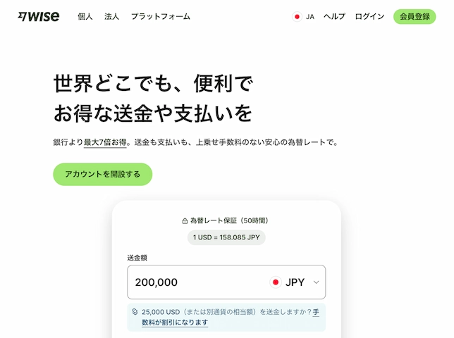 - クレジットカードの海外事務手数料(1.6〜3%)を節約したい → Wiseは0.4〜1%程度で圧倒的に安い