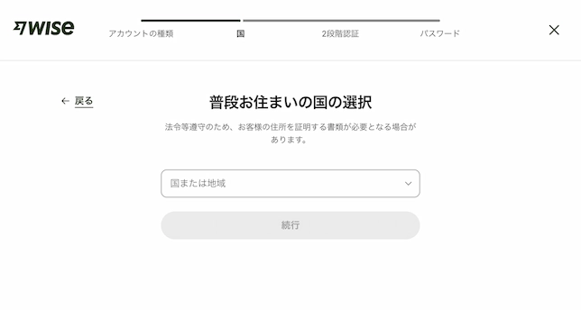 - 居住国を選択(海外在住の場合は、証明できる住所の国を選択)