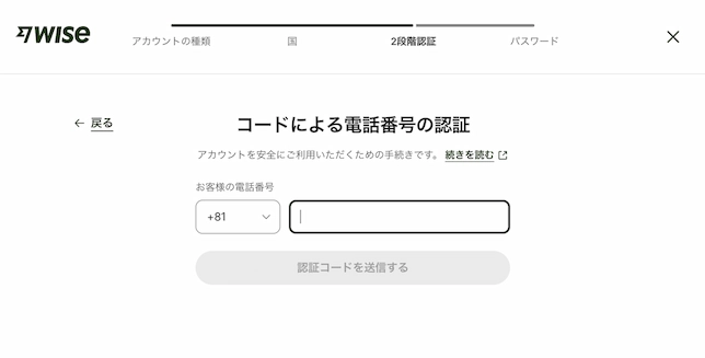 - 電話番号を入力し、SMSで届いた6桁コードで認証