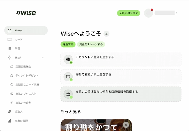 - Wiseデビットカードを取得する(後での場合は以下に説明します)