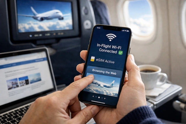飛行機内でネットを使う方法【機内Wi-Fi・eSIM】
