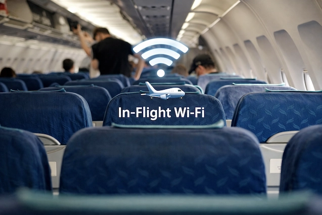 最も一般的な方法は、航空会社が提供する機内Wi-Fiサービスです。