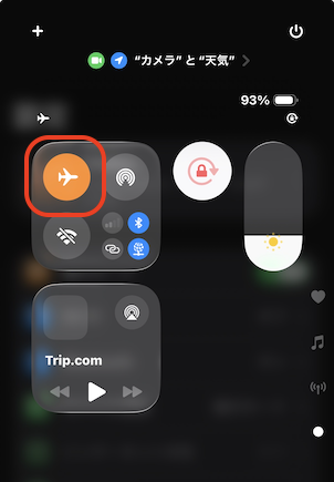 - アイコンがオレンジ色になれば機内モードがオンの状態