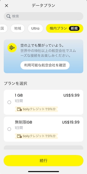 Sailyの機内プランも、対応航空会社を利用する方には選択肢の一つになります。