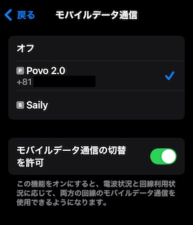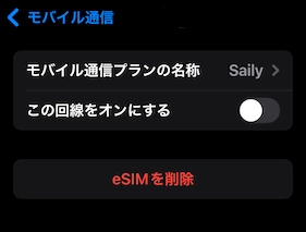 日本のSIM(主回線)のデータローミングはOFFに Saily eSIMのデータローミングはONですが、 日本のSIM(主回線)のデータローミングは必ずOFFにしてください。 こちらをONにすると高額請求の可能性があります。