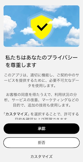 初回起動時に、プライバシーポリシーの画面が表示されます。