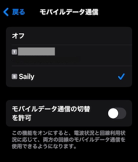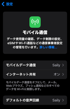 設定→モバイル通信→Saily→データローミング - 3. モバイルデータ通信がSailyになっているか